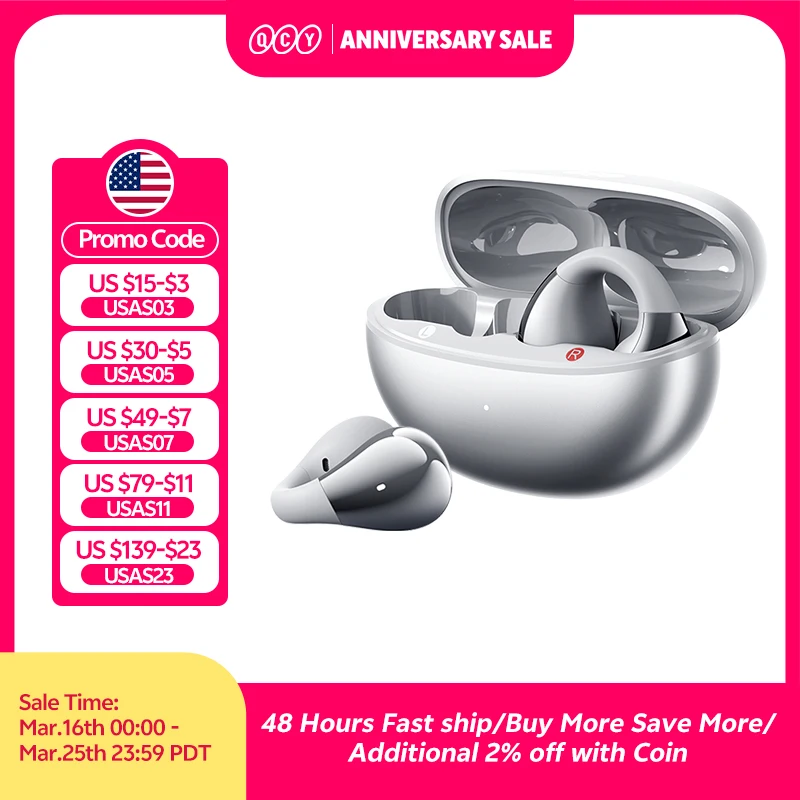 $252.75 – $274.20Price range: $252.75 through $274.20QCY Crossky C30S Open Ear Wireless Earphones Hi-Res with LDAC Ear Clip Earbuds Bluetooth 6.0 Clip On OWS Sports Headphones 40Hrs