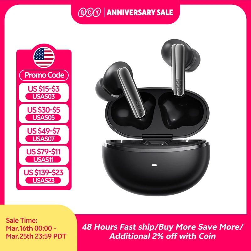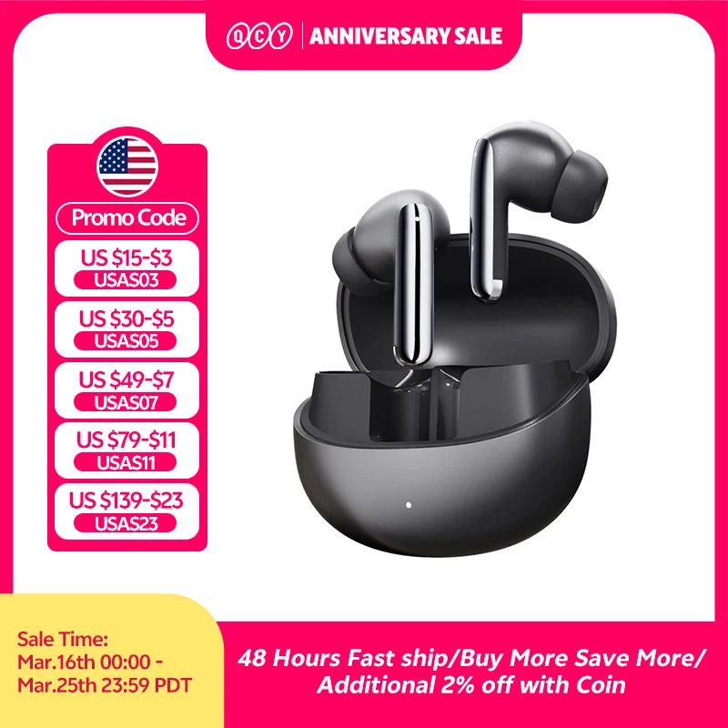 $44.34 – $51.18Price range: $44.34 through $51.18QCY MeloBuds N70 Adaptive ANC Wireless Earbuds Bluetooth 6.0 LDAC Hi-Res Audio 6 Mics Wireless Charging Earphones 50Hrs IPX5
