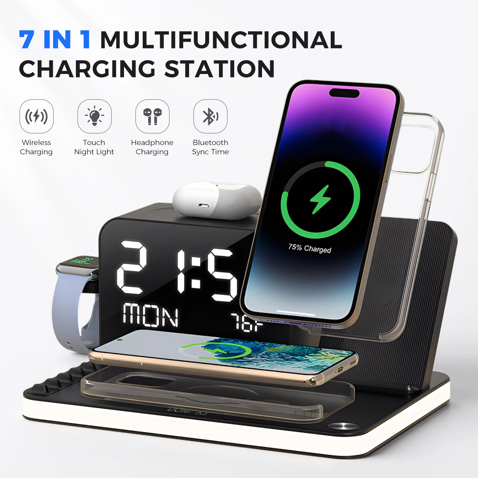 $116.73 – $148.28Price range: $116.73 through $148.287-in-1 Wireless Charging Dock Phone Stand With Night Light Time and Temperature Display For IPhone Headphones and Watches