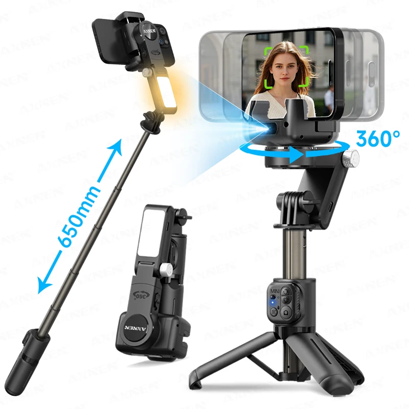$91.33 – $106.46Price range: $91.33 through $106.46AXNEN Q19 Tracking Gimbal Stabilizer Selfie Stick Tripod for Smartphone 360° AI Rotating Shoot with Fill Light Bluetooth Remote