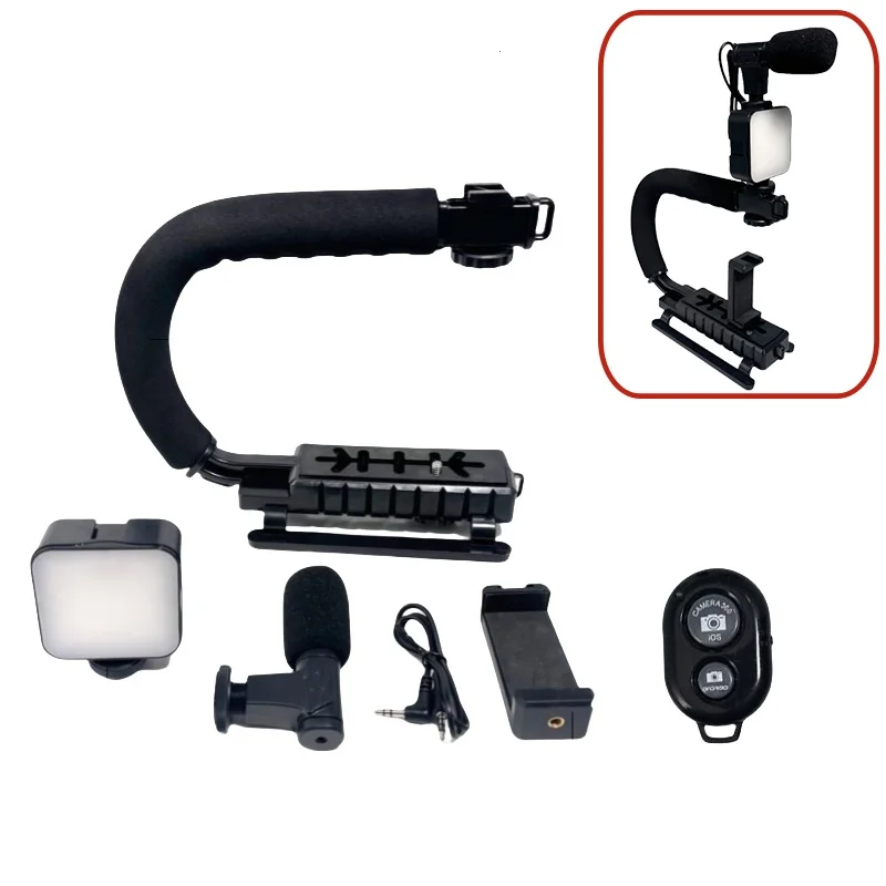 $19.40 – $22.34Price range: $19.40 through $22.34U C Shaped Holder Grip Video Handheld Stabilizer with Fill light,Phone Holder,Mic,Remote Control for SLR Cameras Home DV Came