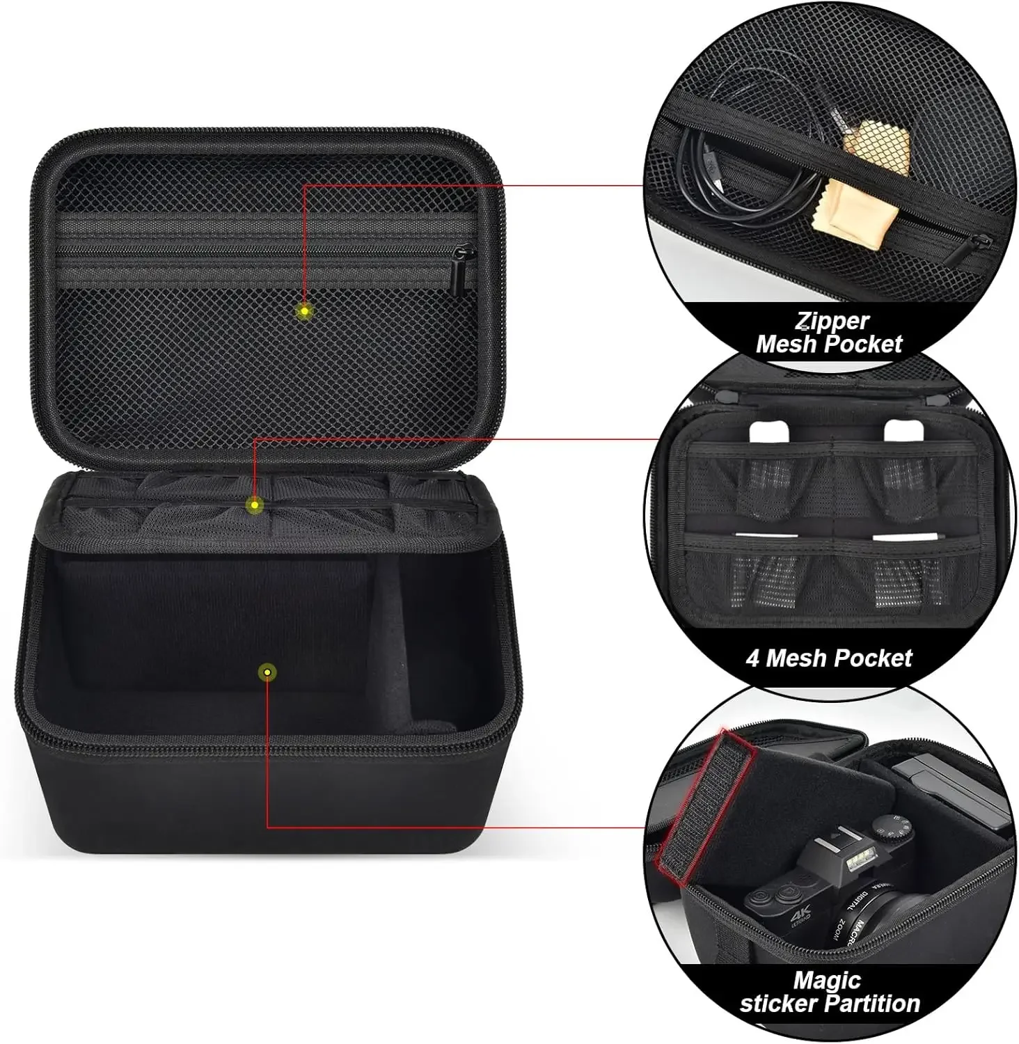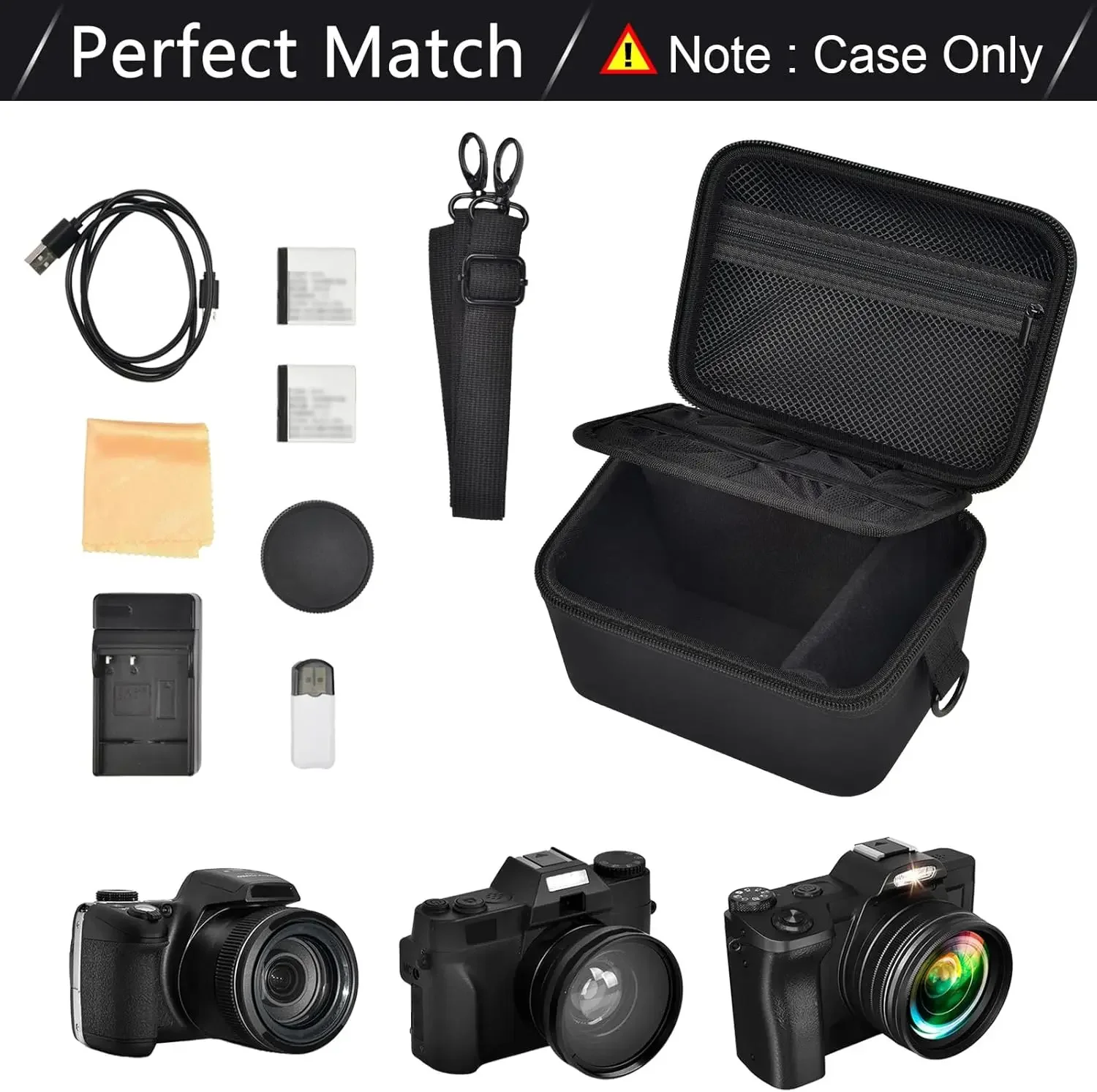 Large capacity camera carrying case: Digital camera case with accessories mesh pocket for rechargeable battery, HDMI cable, usb cable, cleaning cloth and more accessories. Whether you’re traveling or camera photography, this extra storage space helps keep your 5k digital camera related equipment organized and within reach