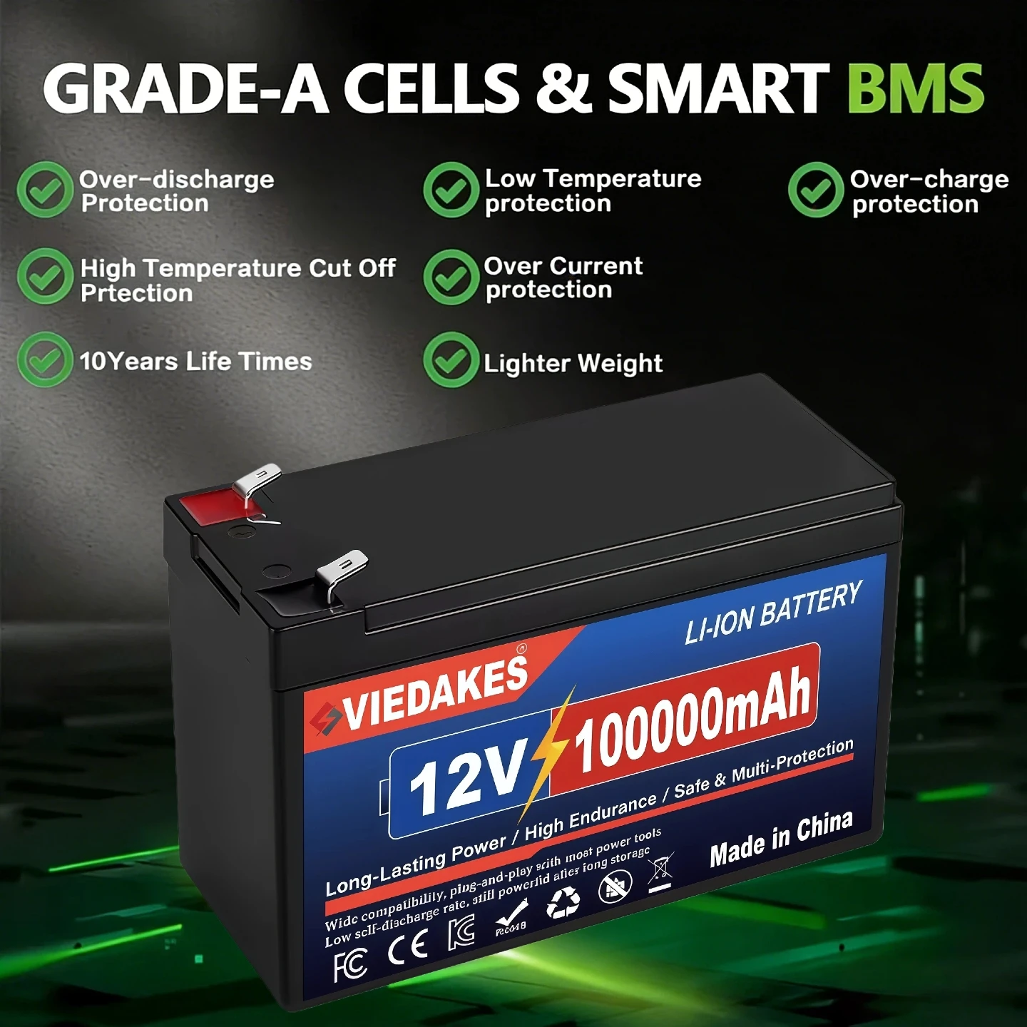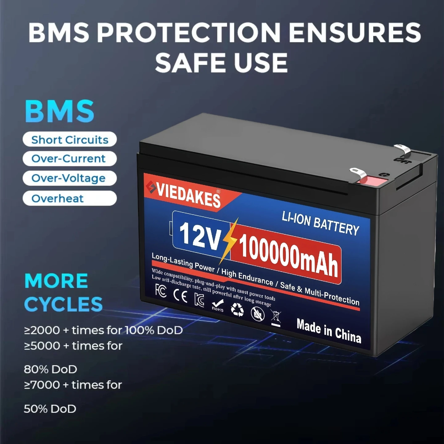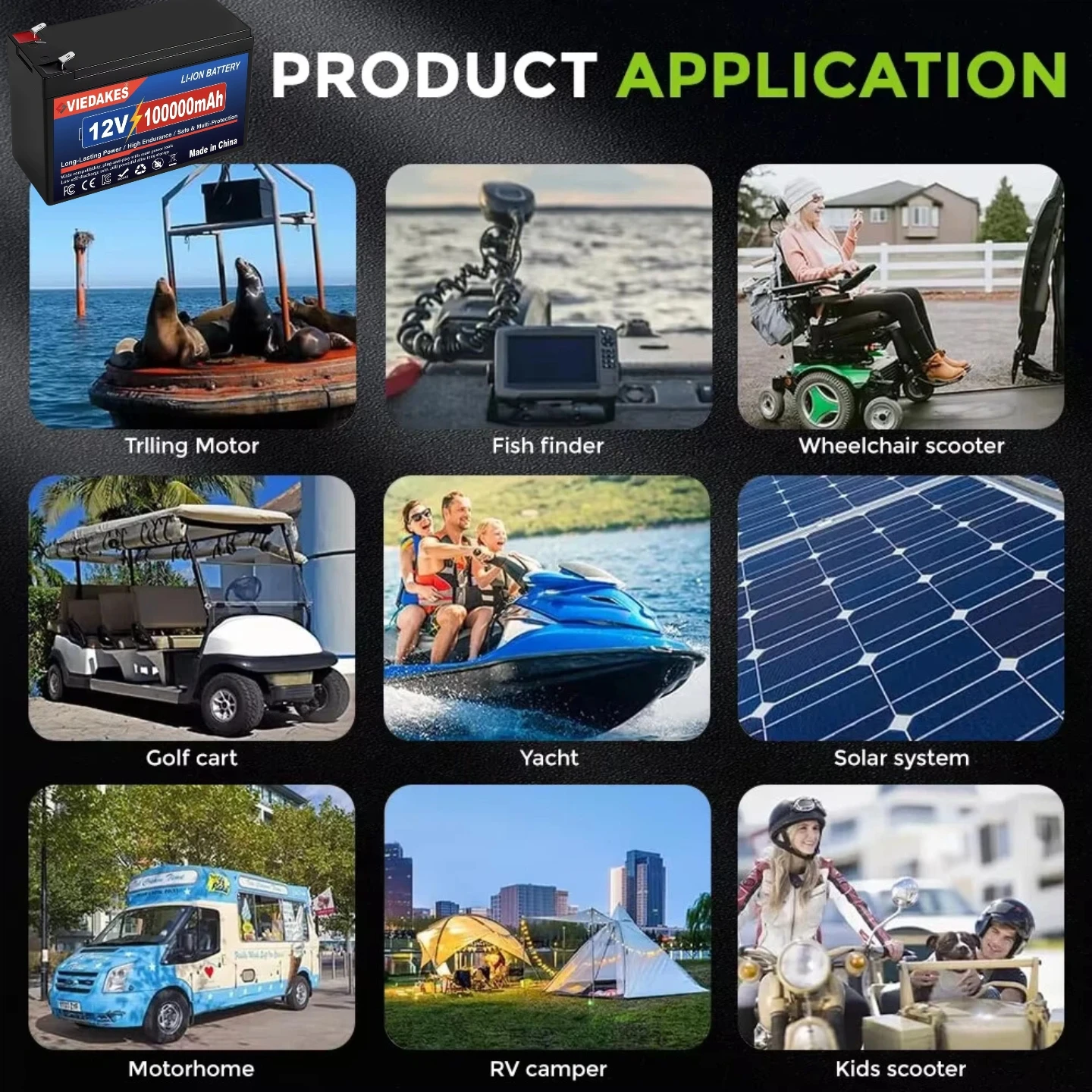 Widely Uses: 12V 100ah lithium battery perfect for camping, house alarm system, emergency lighting system, firefighting equipment, child riding toys, solar gate opener, pump water, lawn mower, router, garage door opener etc.