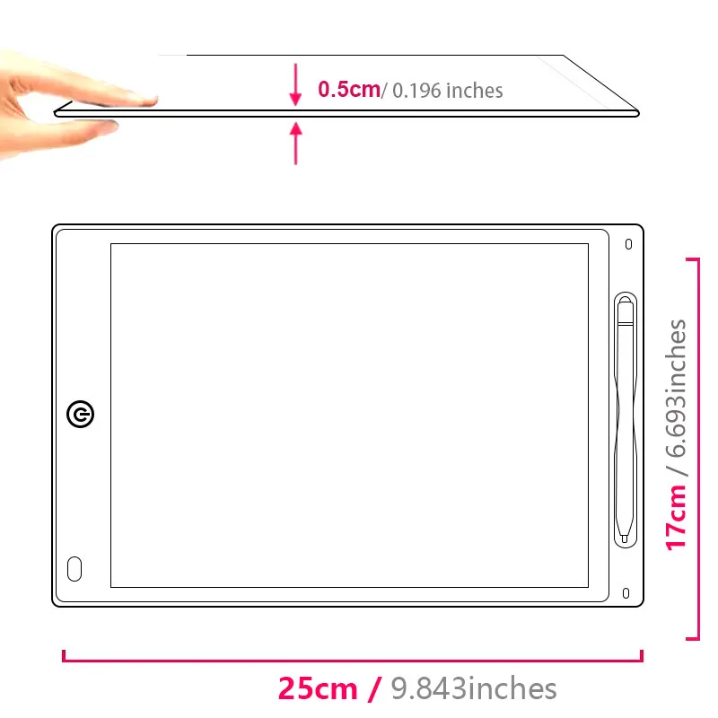 At 10 inches, this LCD writing board is the perfect size for on-the-go calculations and drawings.