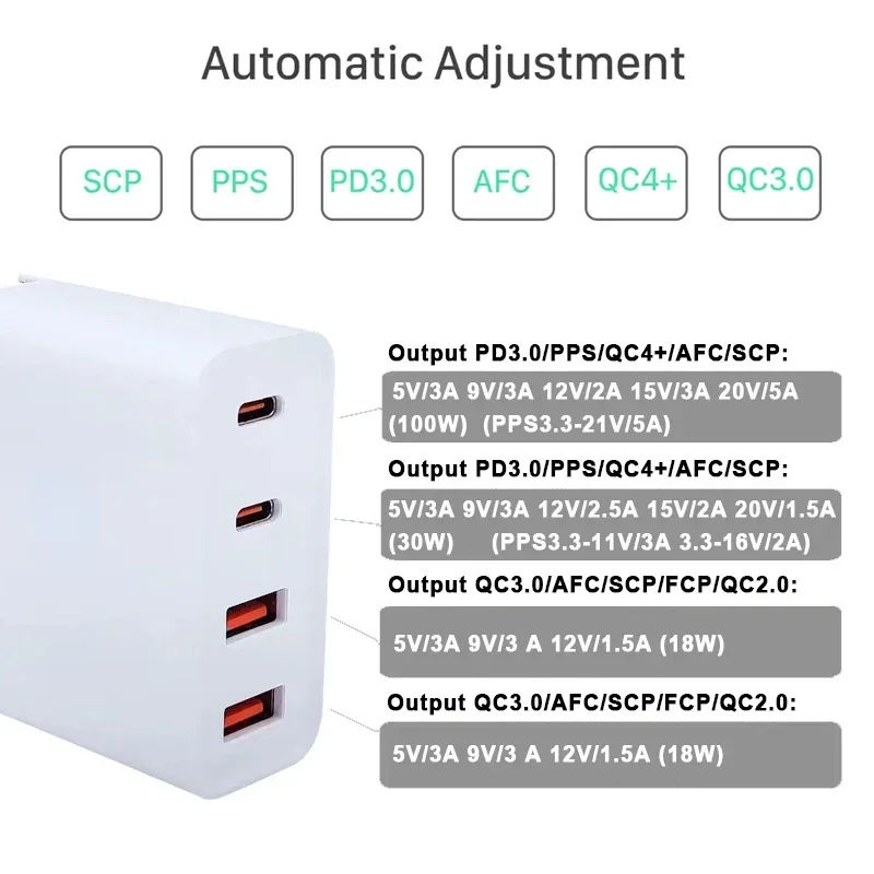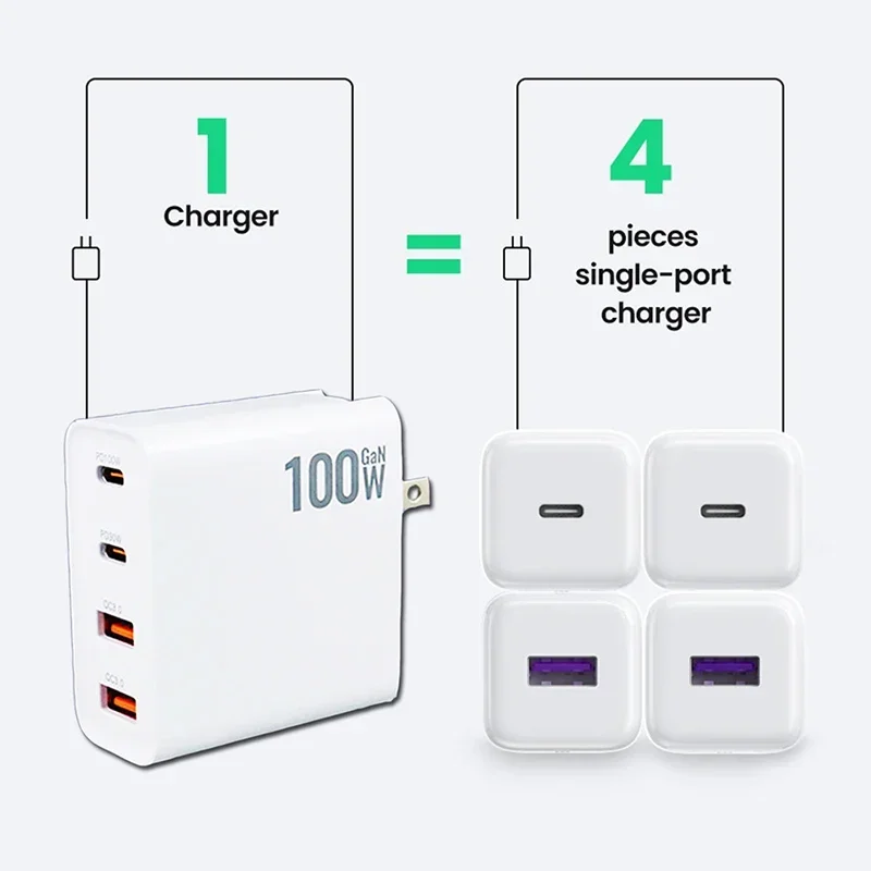 100W GaN Charger USB PD 100W Fast Charging Dual USB C PD Dual USB 3.0 5Gbps Date Transfer Quick Charge for Xiaomi Samsung Mac