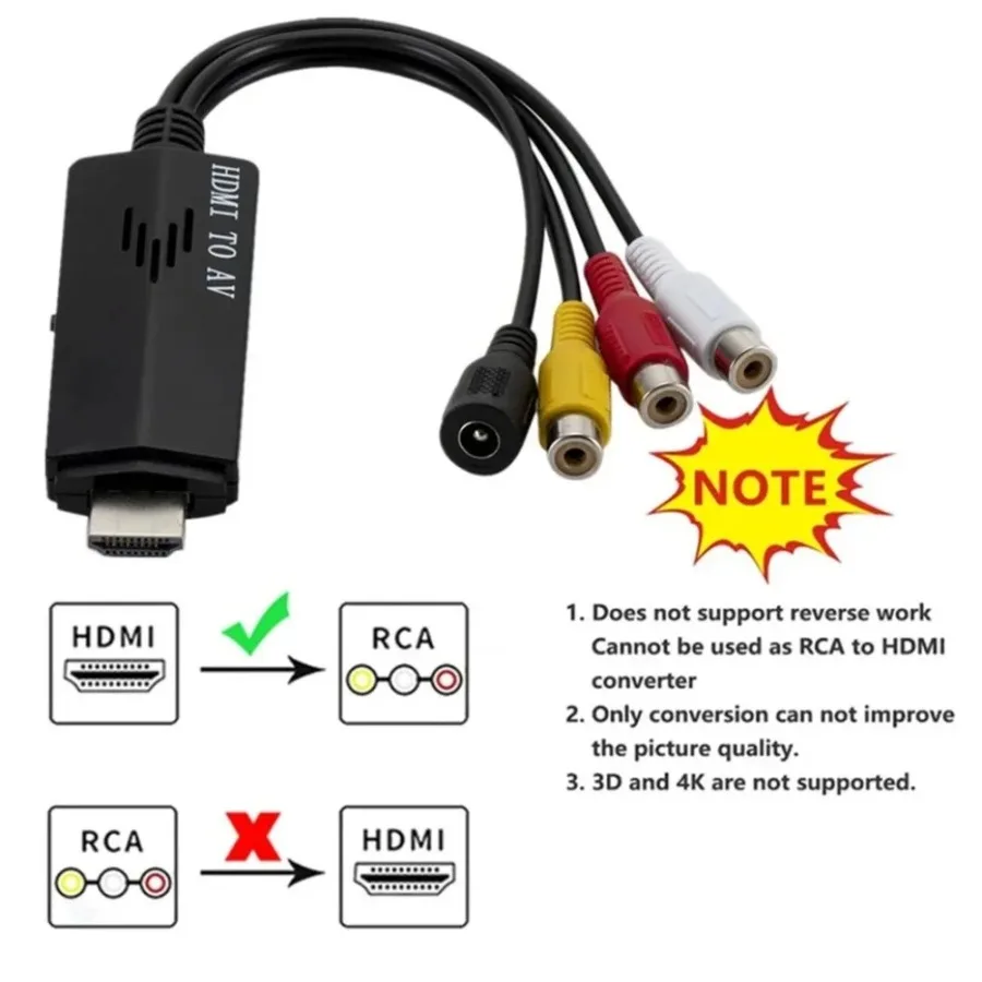 – All in one HDMI to RCA cable converter.