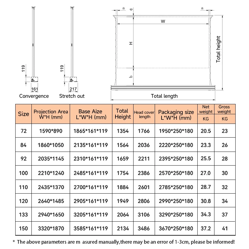 Size: 2800*300*200mm ; G.W:32kgs ; N.W:30kgs