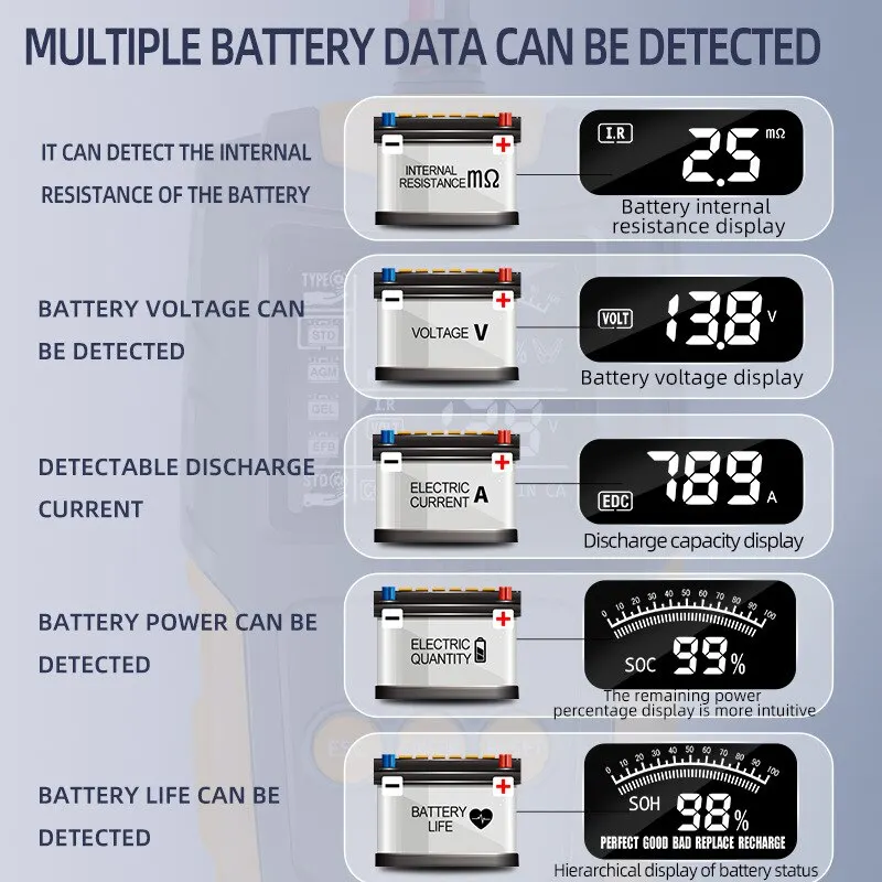 • Diagnostic Measurement Analyzer :As a diagnostic measurement analyzer, it delivers precise readings, helping you to understand the condition of your car battery and take appropriate action.