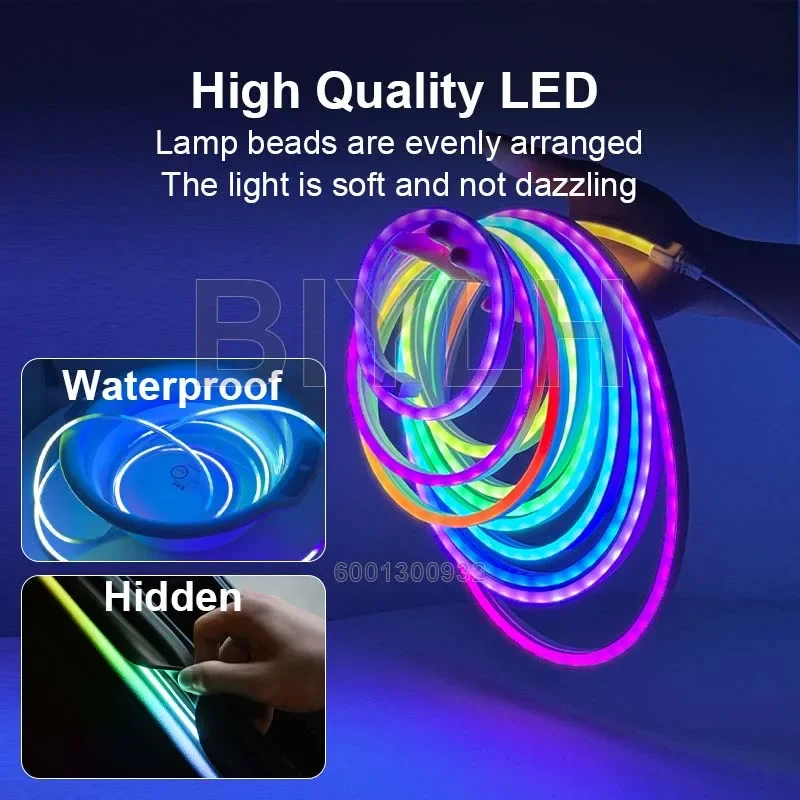 5M RGB Car Trunk Light APP Control Multi-mode Interior Atmosphere Light 12V LED Flexible Waterproof Light Bar Car Accessories
