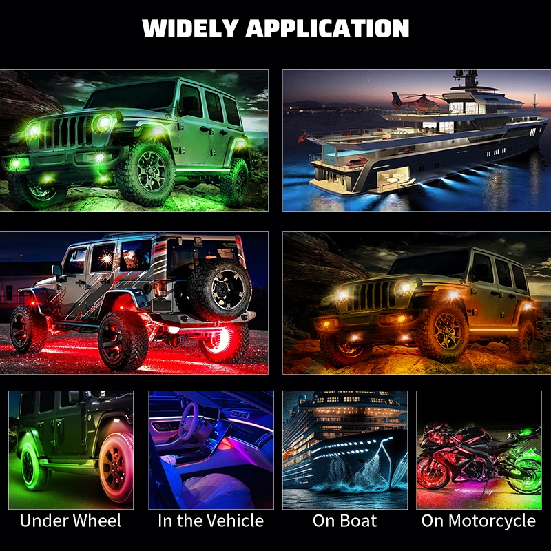 Widely used in off-road, SUV, four-wheeled vehicles, ATV, UTV, trucks, cars, boats, golf carts and so on.