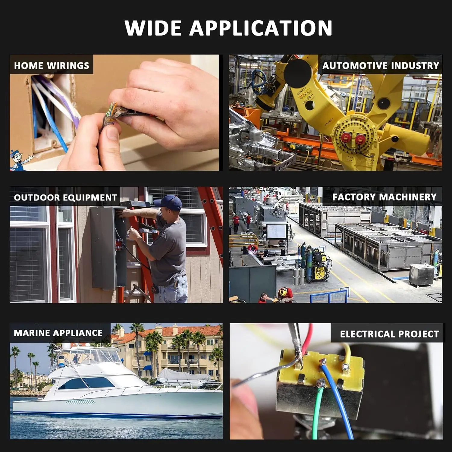 Wide Application — The solder seal wire connectors can be used in automotive, motorcycle, boat, marine, trailer, sound systems, science projects and electronic equipment, providing durable connection and reducing wiring failures.