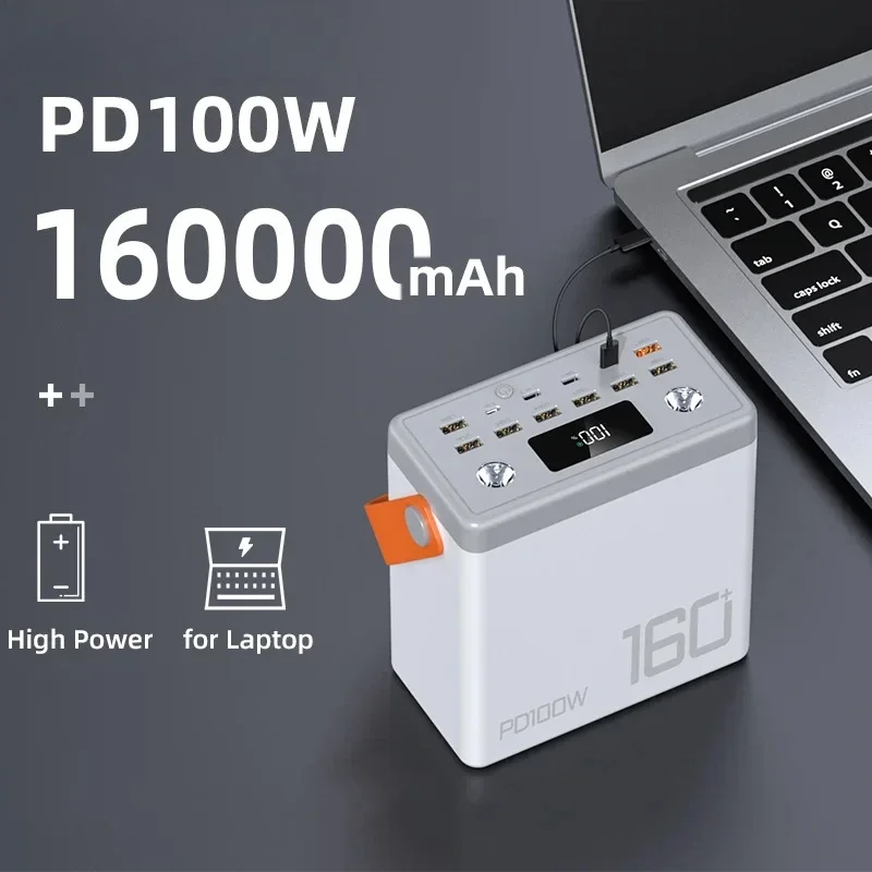 160000mAh Extra Large Capacity Portable External Battery  PD100W Fast Charging Spare Battery for IPhone Xiaomi Laptop Computer