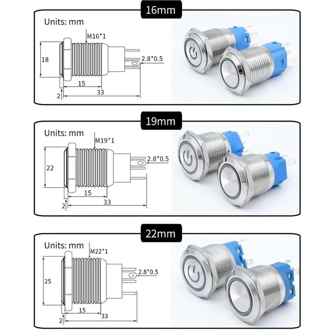 Available in 16mm, 19mm, 22mm sizes, this switch provides flexibility in terms of installation space and design.