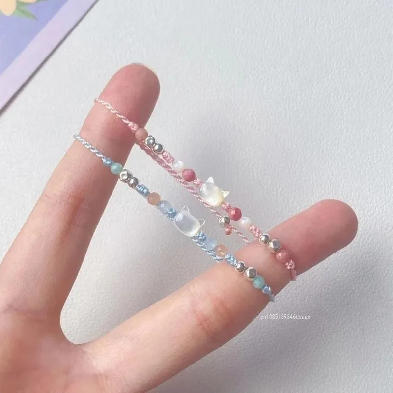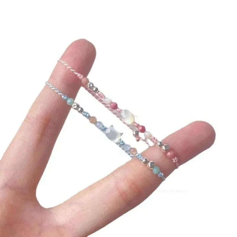 2/1pcs Cartoon Cats Woven Bracelet Transparent Resin Beads Bracelet Girl Heart Accessories Gifts for Couple Valentine’s Day