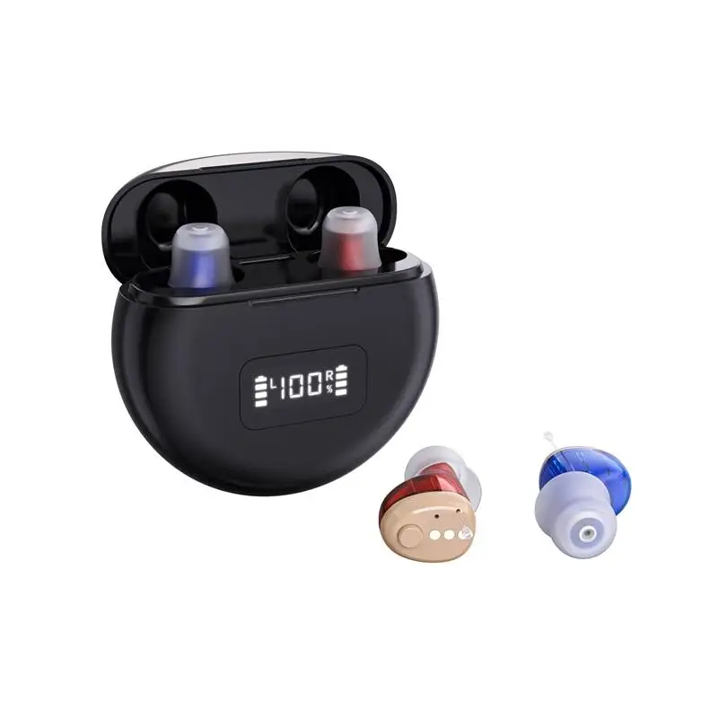 Hearing device:2      Earplugs:20       Cleaning brush:2     Charging cable:1     Instructions:1       Charging case:1       Earwax Protector kit :8