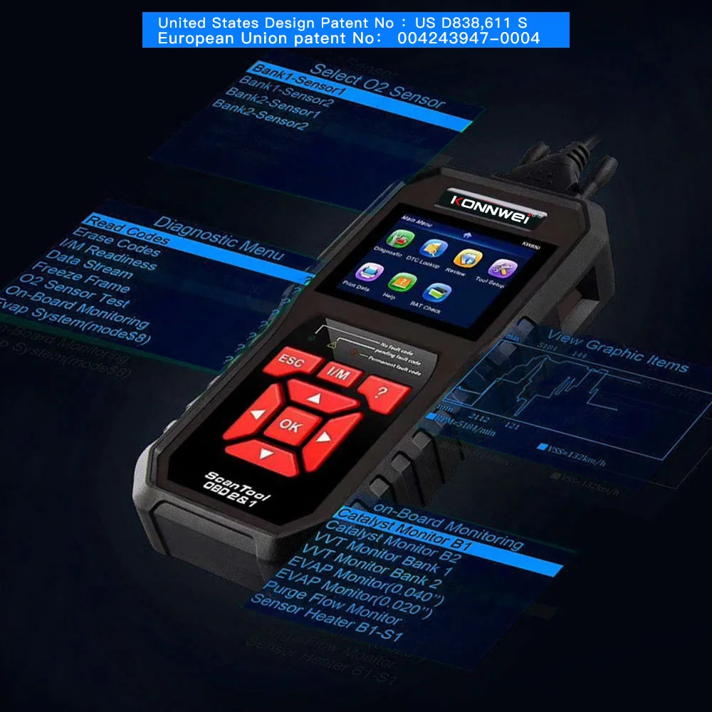 KONNWEI KW850 is a true scanner that ultimate in functionality and affordability, allows users to do their jobs faster and know their car better even for a beginner! Stay home and diagnose your car yourself!