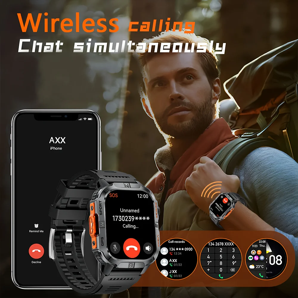 2026 New Outdoor Military Men’s Smartwatch Is Equipped With GPS LED Lighting, A Compass, Wireless Communication, IP68 Waterproof