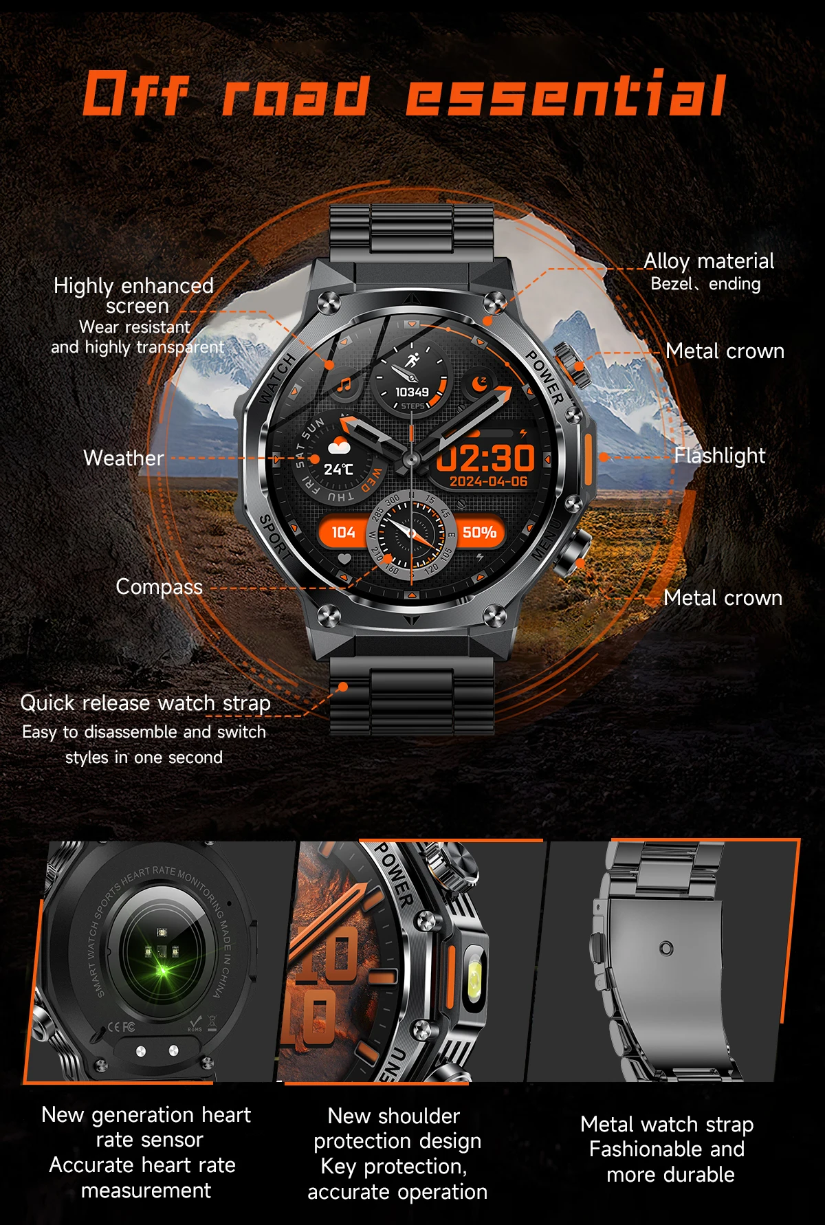 Stay connected without carrying your phone, thanks to the Bluetooth call feature on this military-grade smartwatch.