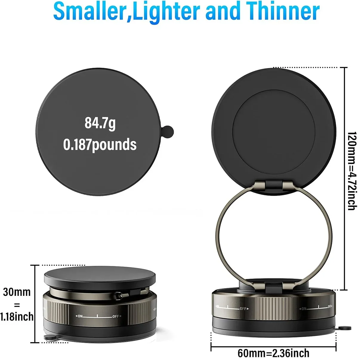 【Dual Axis Adjustment & 360° Rotation Lock】This vacuum suction cup magnetic phone stand features a unique dual axis folding metal arm that can rotate both 360 ° horizontally and 240 ° vertically,making it easy to adjust any angle to meet your needs. Unique folding design makes it unbelievably small in size.After 30000+ durability tests,it ensures stability and reliability