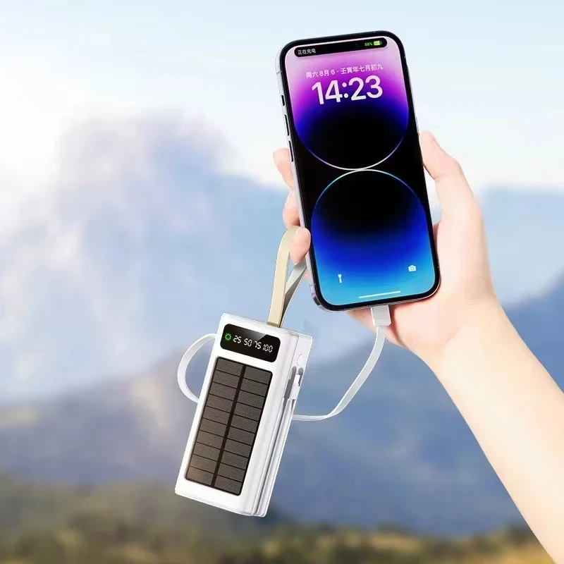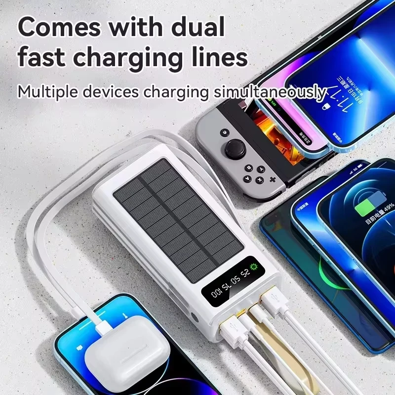 2026NEW 100000mAh Large Capacity Solar Powered Mobile Power Cord External Battery LED Light Portable Four Interface Charger