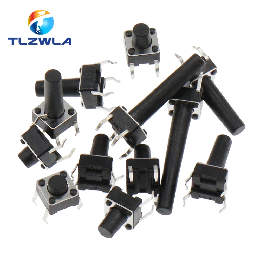 20PCS 6×6 Push Button Switch DIP 6X6X4.3 Light Touch Switch 6*6*4.3/5/6/7/8/9/10/11/12/13MM The Power Switch 4Pins