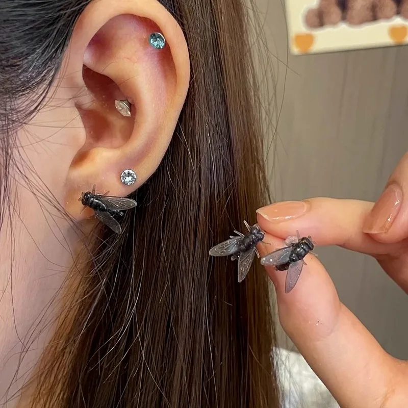 2pcs Funny Realistic Tiny Black Fly Stud Earrings for Men and Women Spoof Personalized Insect Earrings Fashion Jewelry Gifts