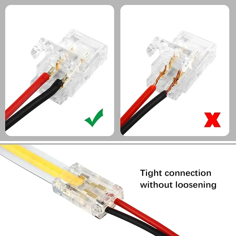 【Appiaction】: These upgraded mini 2 pin COB LED connectors are suitable for 8mm DC12V/24V flexible COB LED strip lights. With it, you can quickly connect two COB LED strips without soldering.