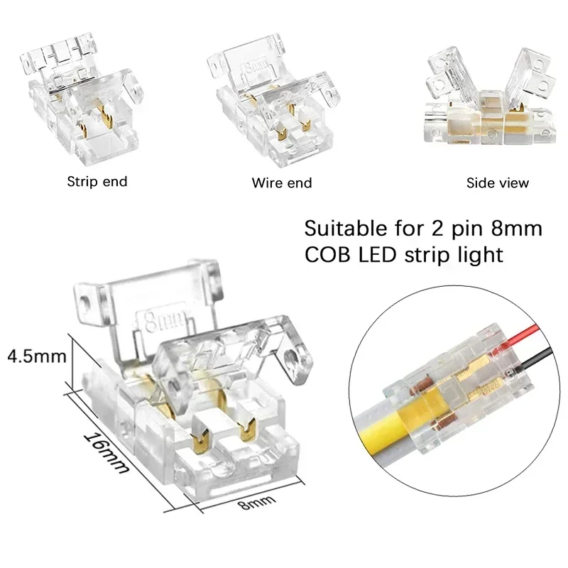 2pin 8mm COB LED Strip to Strip LED Connectors Strip to Wire Connection Solderless Extension for 8mm COB LED Strip Lights