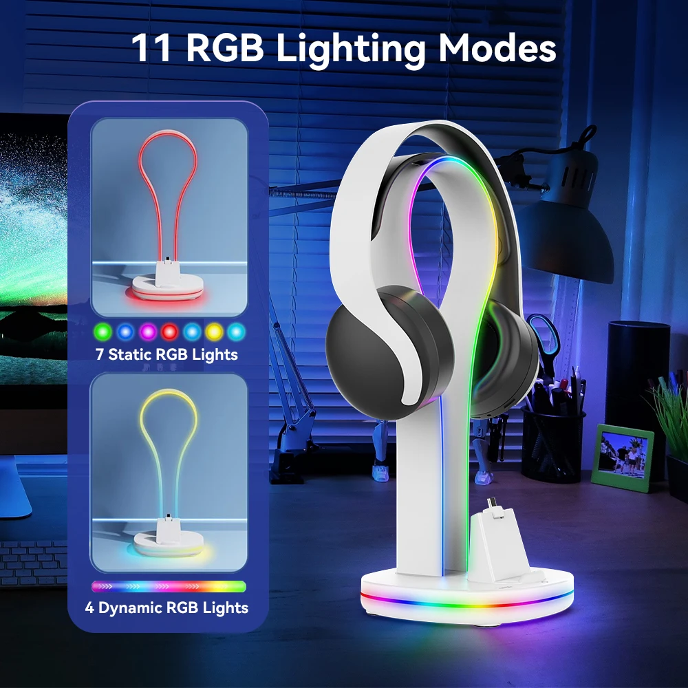 Its integrated headphone stand design is compatible with PS5 wireless headset, such for PlayStation PULSE Elite Wireless Headset/PULSE 3D Wireless Headset and other popular headphones, setting it apart from others.