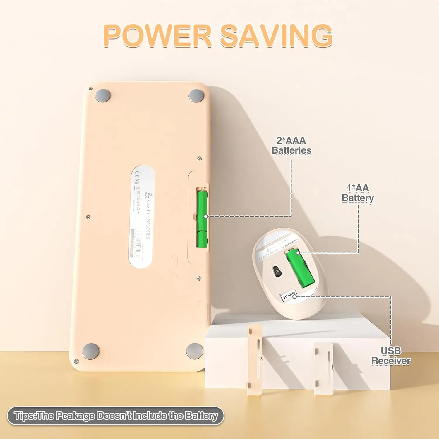 Note: The USB receiver is plugged into the back cover of the keyboard (open the back cover to see the receiver).