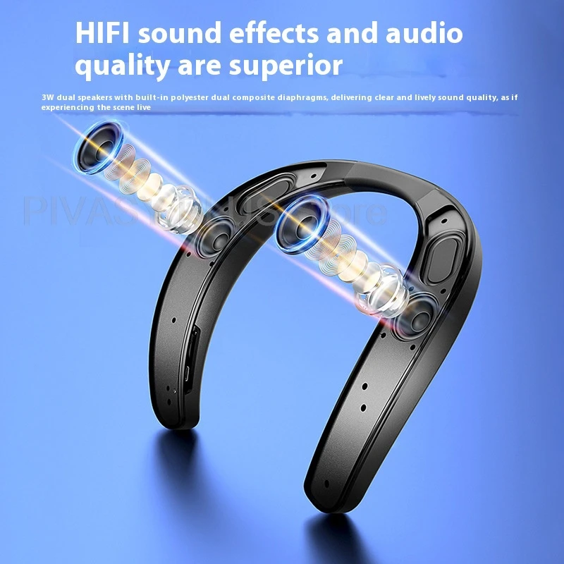 3W 2Channel Neckband Open Ear Bluetooth Speaker 5H Playtime Loudspeaker 600mAH IPX5 Headset TF Type-C For Gaming Sports Outdoor