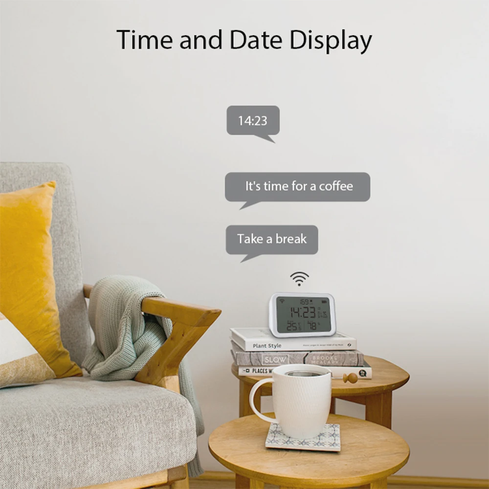 1. 4 in1 Wifi Temperature&Humidity&Illuminance&Time Clock.User can view the temperature humidity lux from anywhere,anytime.