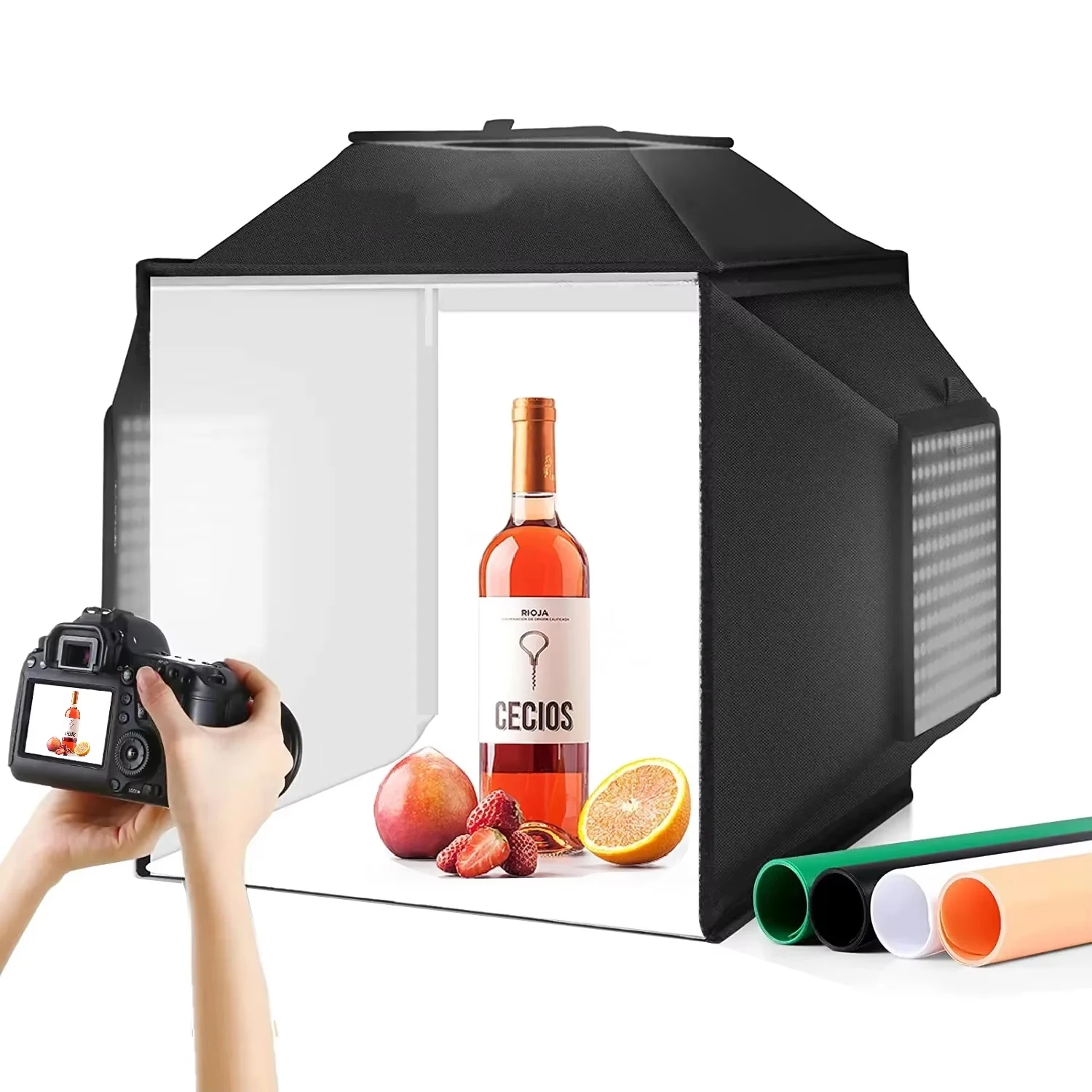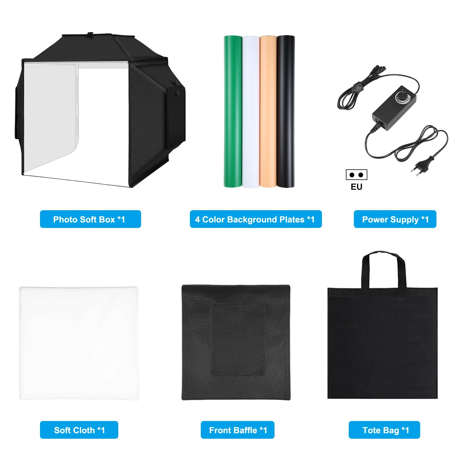 40*40cm Folding 72W 5500K LED Photo Studio Shooting Tent Soft Box Dimmable Light Softbox 2 in 1 Photography Lighting Kits & 4 Colors PVC Backdrop Board(Black, Orange, White, Green)
