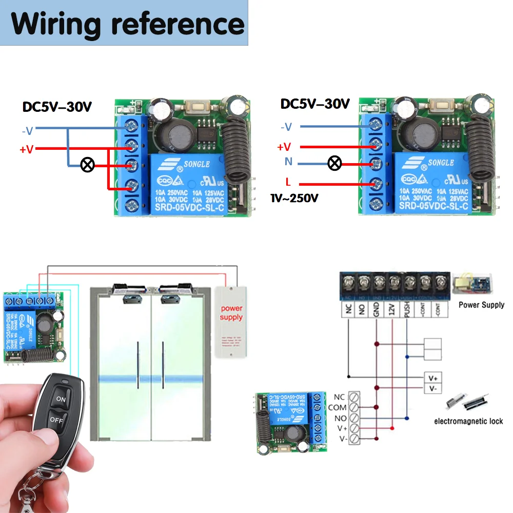 433Mhz RF Remote Control Wireless Switch DC 5V 12V 24V 1CH rf Relay Receiver and 2CH Transmitter For Door Electromagnetic lock