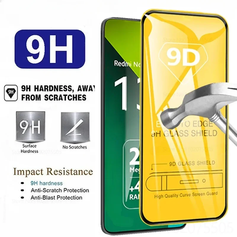 4Pcs 9D Full Cover Tempered Glass for Redmi Note 14 13 Pro Plus 12 11 Pro 14S 12S Screen Protector for Redmi 14R 13C 12C 10A 9A