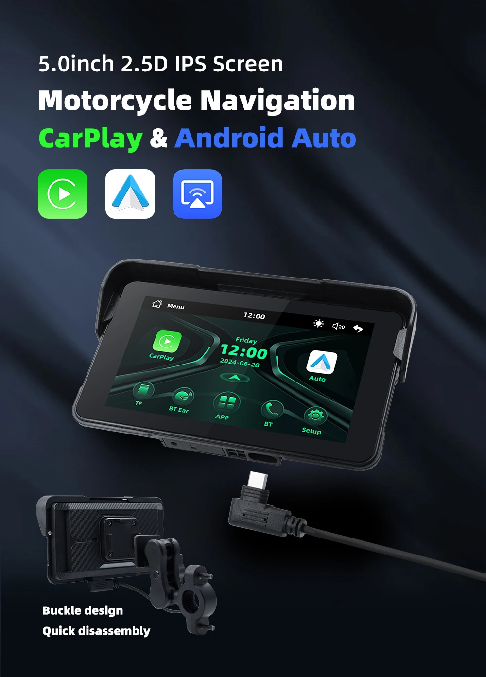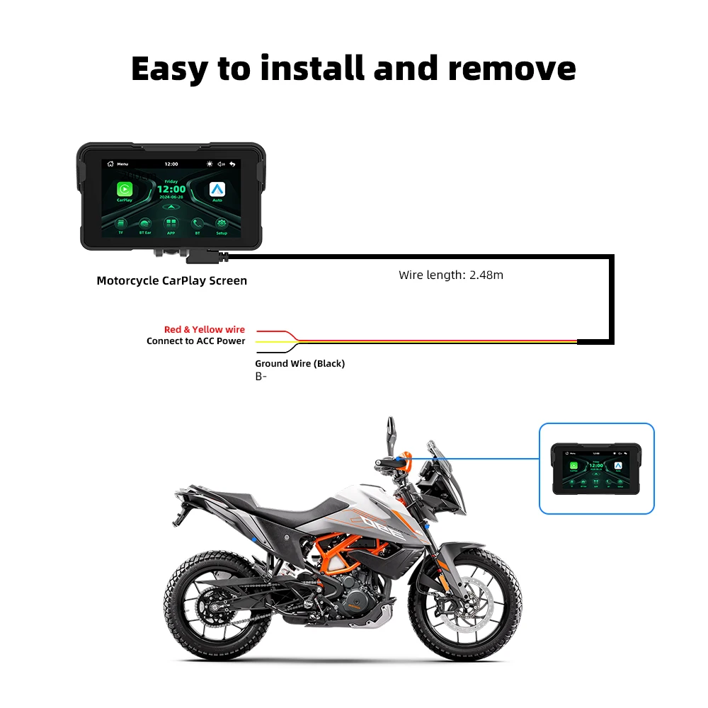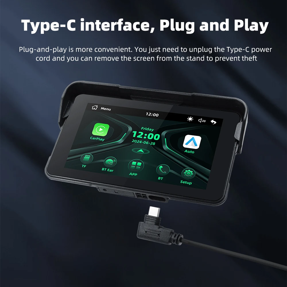 5 inch Wireless Navigation Motorcycle Carplay GPS WiFi Portable Motorcycle Android Auto Digital Monitor Dashboard TPMS USB C
