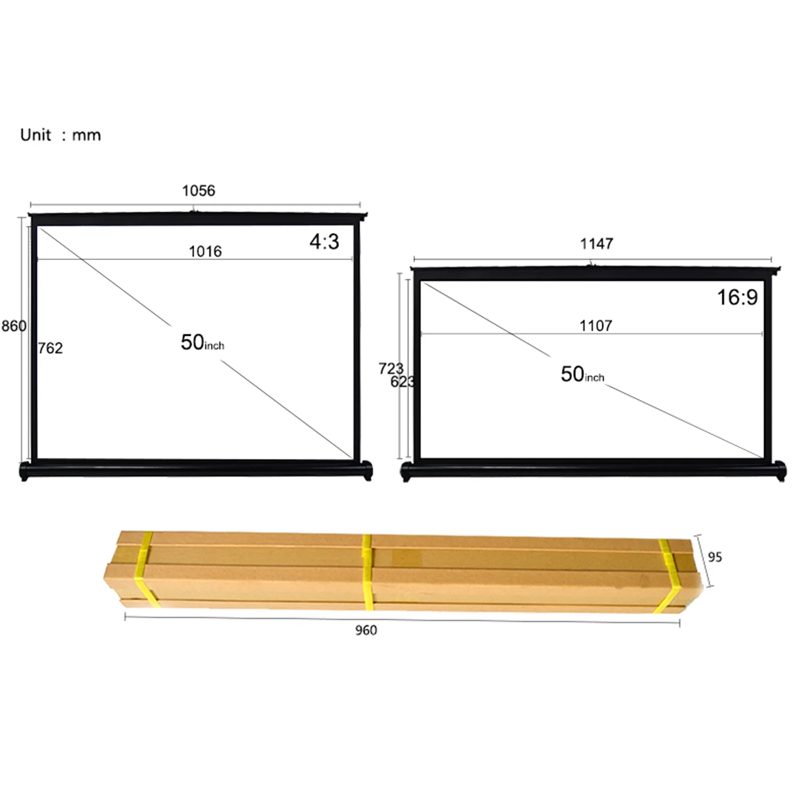 1. Portable Flexibility with Foldable Design: This 50 inch portable projection screen with its innovative foldable structure guarantees effortless setup and teardown. Effortlessly unfold to any desired length, securing a stable viewing area for any occasion. Suitable for spontaneous movie nights or quick presentations on the go