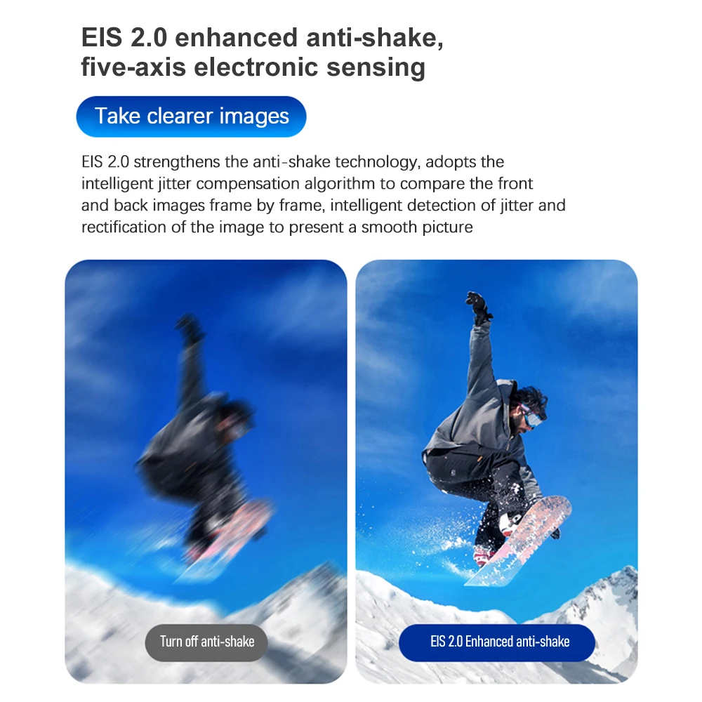 【Anti-shake & Wide Angle Lens】The camera employs EIS 2.0 super anti-shake technology to minimize the shake caused by human movement, resulting in more stable and clearer images. Its 120° wide-angle lens effectively prevents image distortion while providing a broader view.