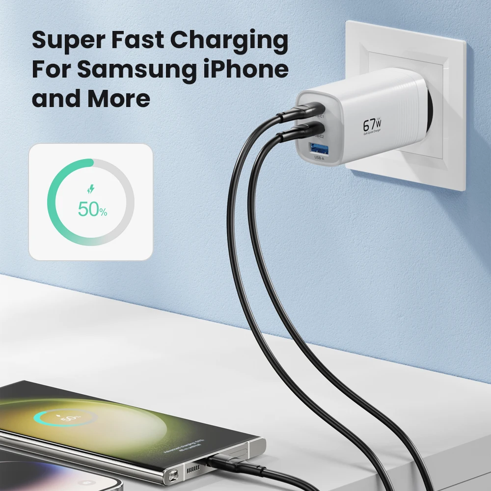 67W GaN Charger PD USB Type C Fast Charging Quick Charge 3.0 PD3.0 Phone Chager for iPhone 14 13 12 Pro Max Samsung S23 Tablet