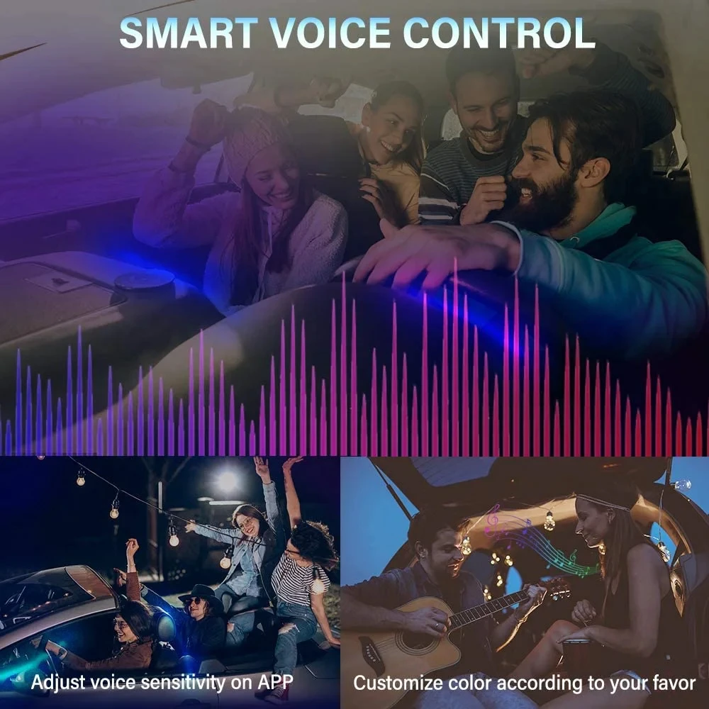 1) Sound Active Effects. The LED under car glow system is equipped with sound sensors that lets the LED lights synchronized with music beat. The LED music light strip follows the beat and adjusts flashing to fit the strength of the sound.