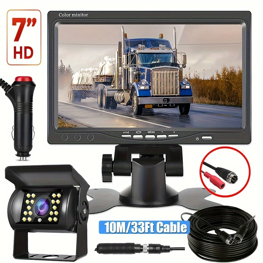 7″ TFT LCD Monitor 4Pin 18 IR LEDs Night Vision Backup Parking Rear View CCD Camera System12-24V For RV Truck Trailer