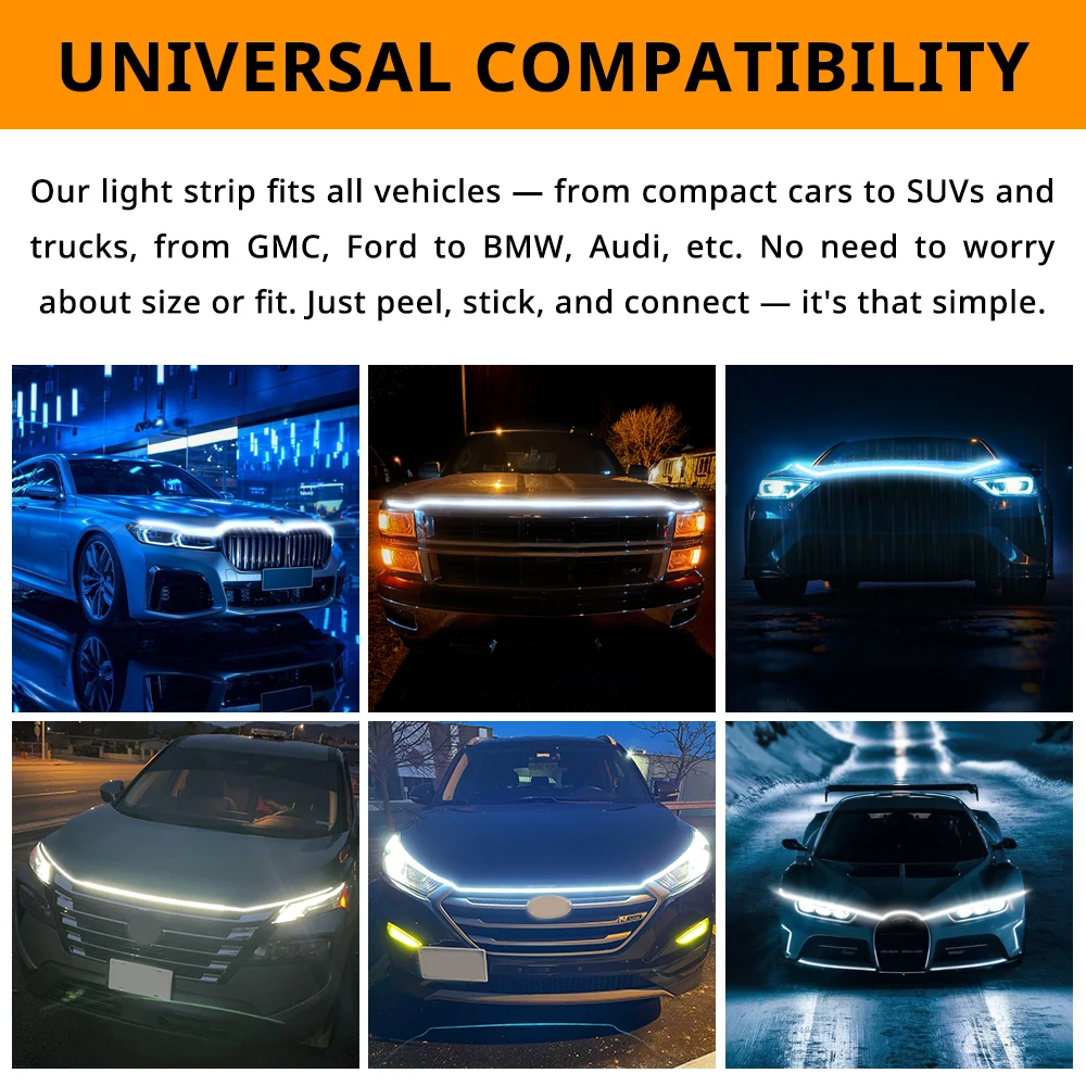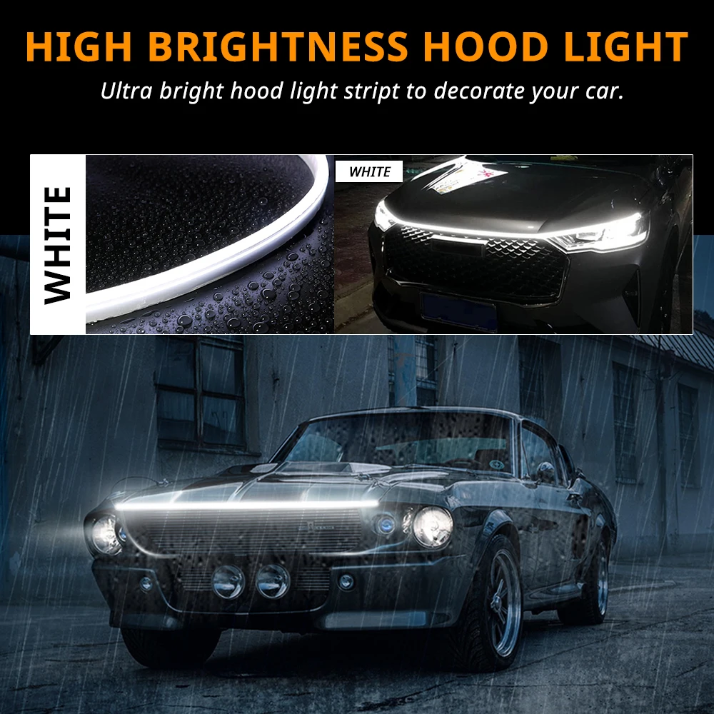• [Brighter LED Beads] This car hood light strip is built with 5050SMD high quality lamp beads, super brightness.