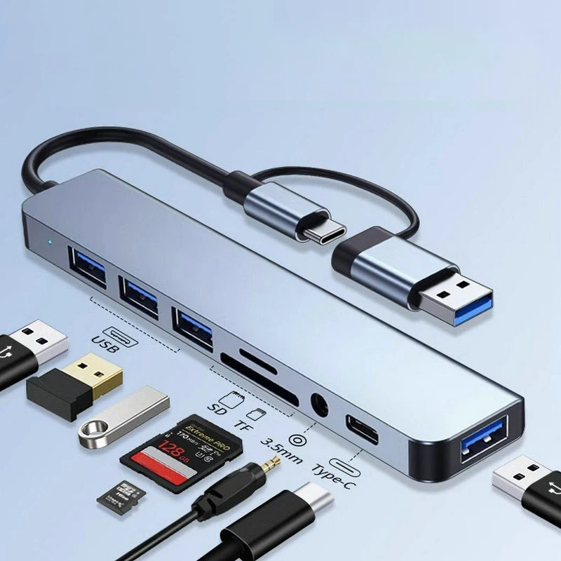 Docking Station Double Head USB C+Type C HUB with 3.5MM Audio Jack Adapter for Micro SD Card Reader Laptop Tablet Mobile Phone USB 3.0 2.0 Disk Converter USB HUB