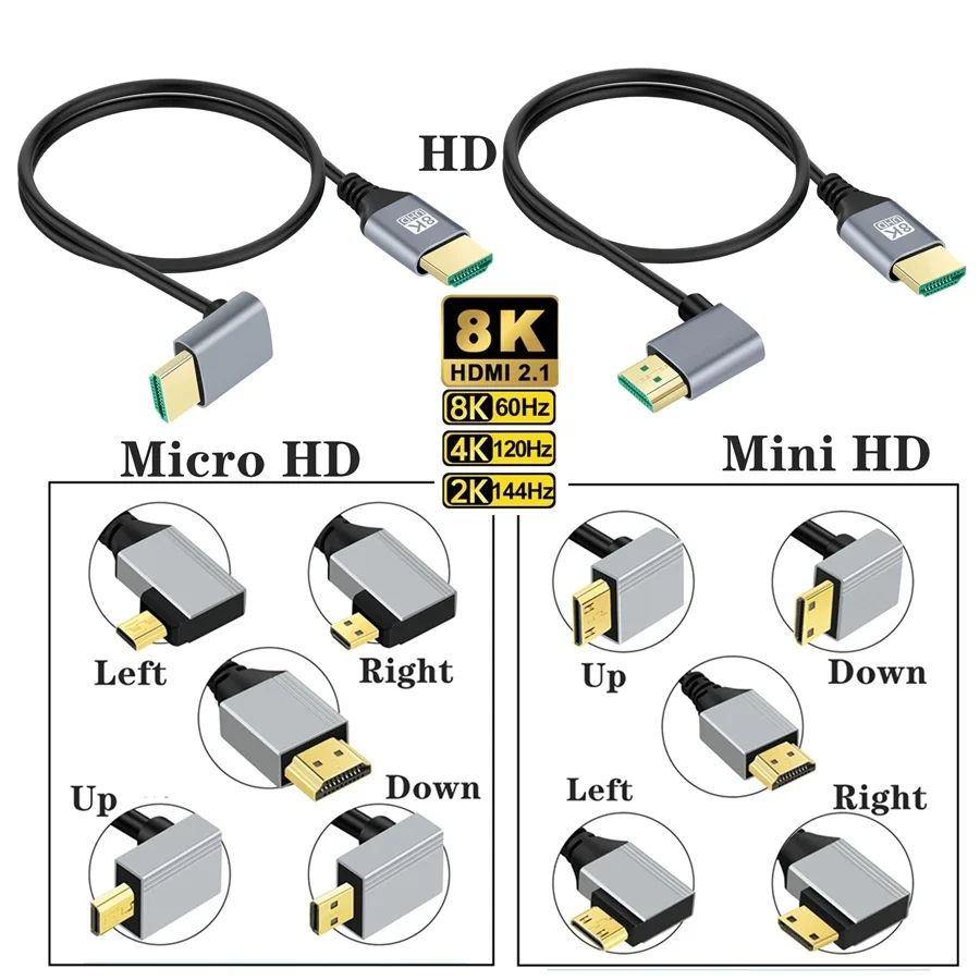 8K60Hz HDMI2.1V HDMI-Compatible Male To Female Extension Cable Micro/Mini HDMI-Compatible adapter Extender Wire Cord left/right/up/down