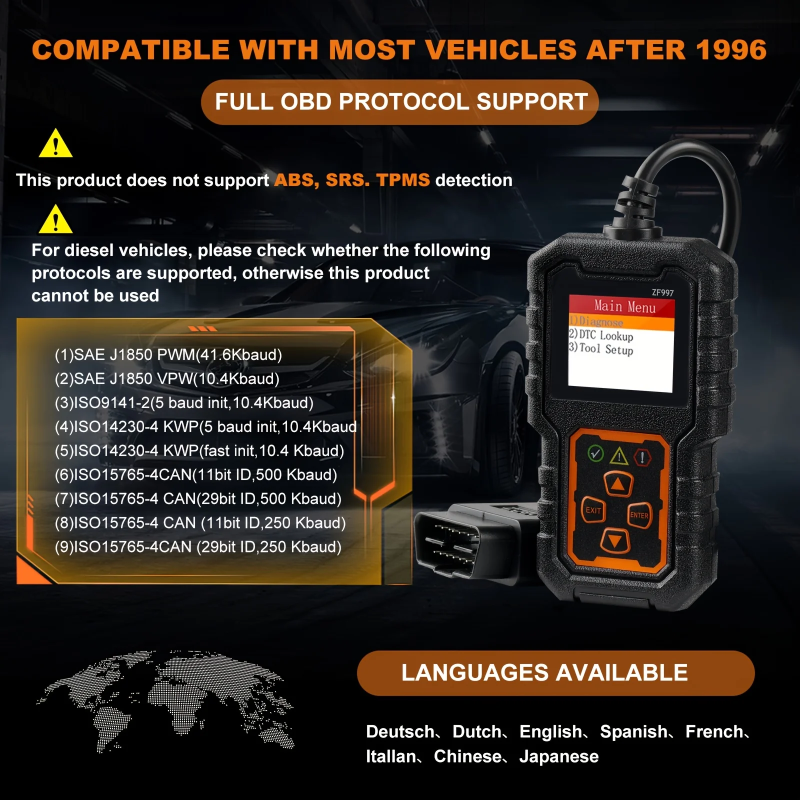 Advanced Obd Ii Scanner Car Engine Fault Code Reader Can Diagnostic Scan Tool, Reads and Erases Error Codes from Obd2 Protocol Vehicles from 1996 or Later