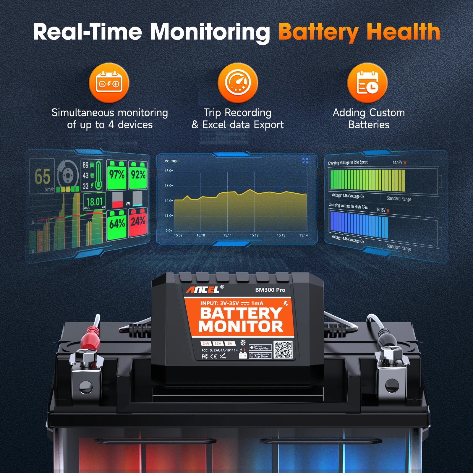 ANCEL BM300 PRO Bluetooth Battery Monitor 6V 12V 24V Battery Health Analyzer Charging Cranking System Test Car Battery Tester