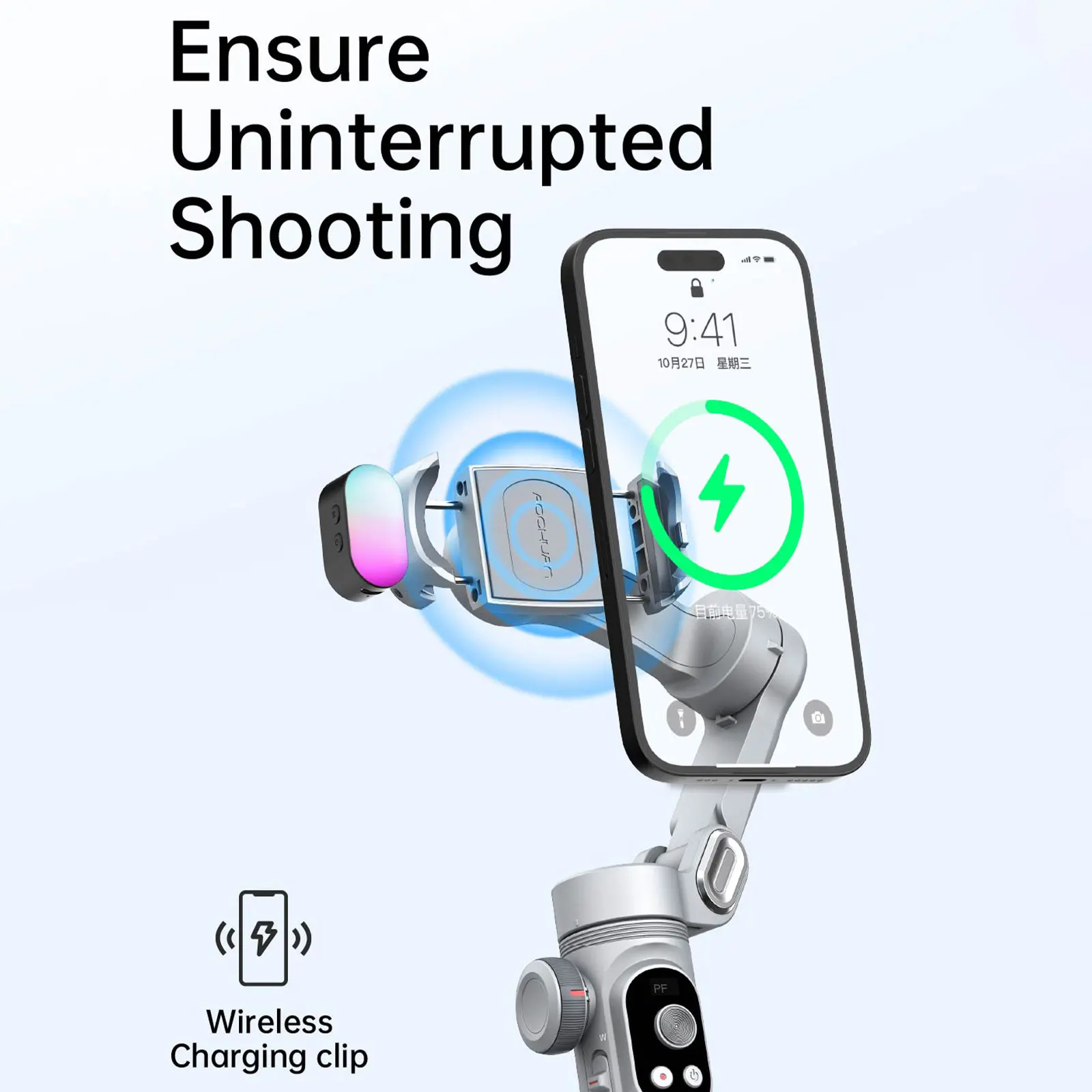 OLED display palm-sized three-axis foldable head. To display the gimbal mode and battery indicator on the unique OLED screen, the Smart X Pro gimbal is more powerful than any smartphone’s gimbal. The AOCHUAN Smart X Pro Head stabilizer is available on iPhone 15/14/13/12/11 Plus/Pro/Max as well as most Android smartphones. In addition, the SMART X Pro measures 10.5 X 4.9 X 2.6 inches when unfolded and 6.2 x 4.3 x 2.1 inches when folded, with a net weight of 0.65 pounds and a payload of 250 grams.