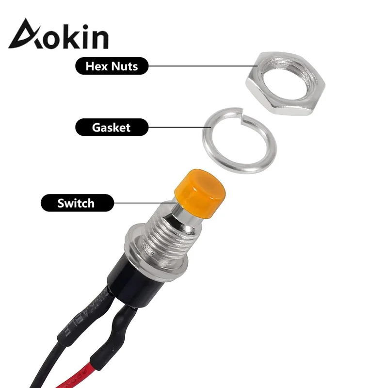 Button Diameter: 6.9mm / 0.27″; Cap Dia. : 6mm / 0.24″; Pin Pitch : 3mm / 0.11″;Hole Diameter: 7mm