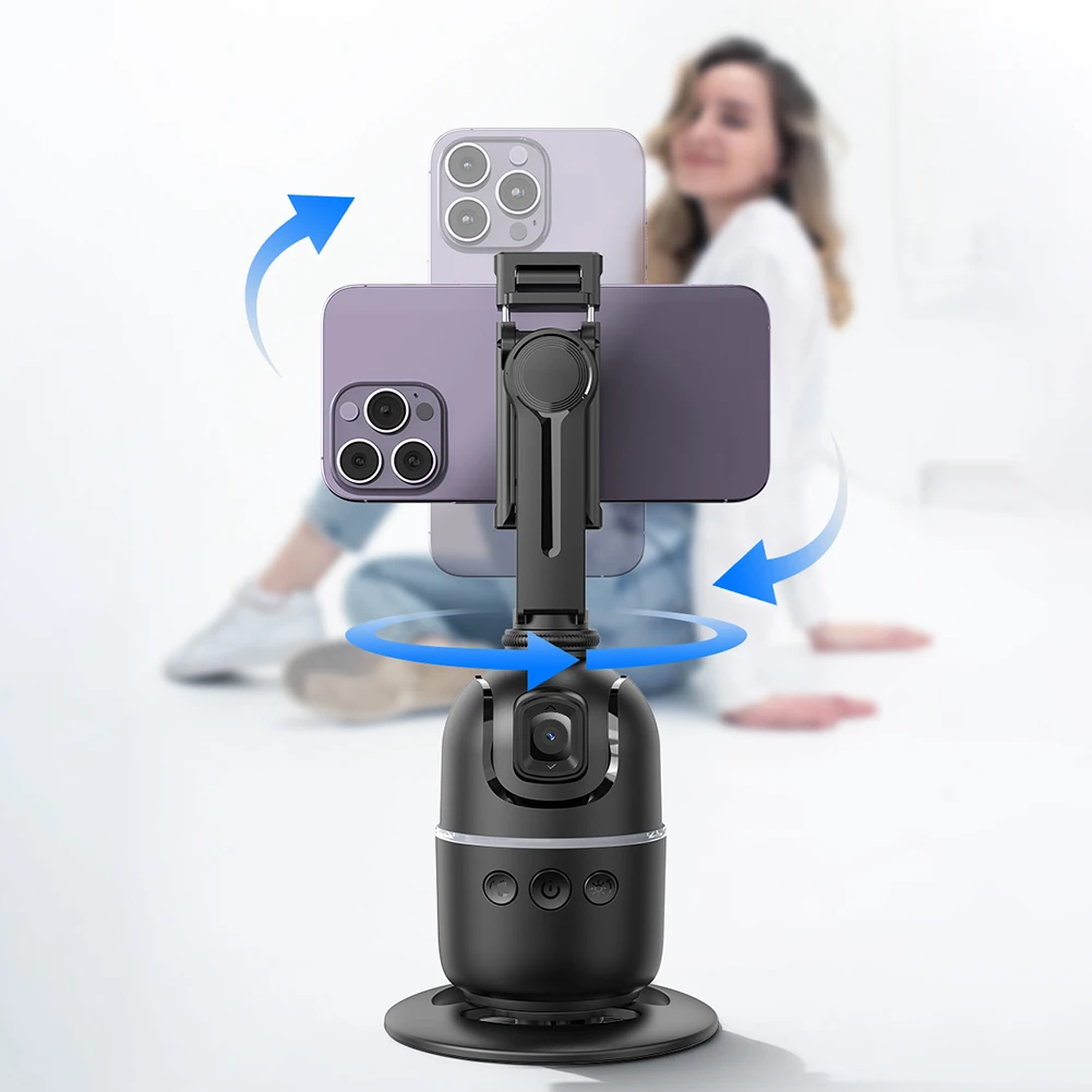 Auto Face Tracking Tripod 360° Rotation Auto Tracking Phone Holder No App Face Tracking Phone Tripod Holder with Remote & Gesture Control Rechargeable Phone Camera Mount for Live Video Recording