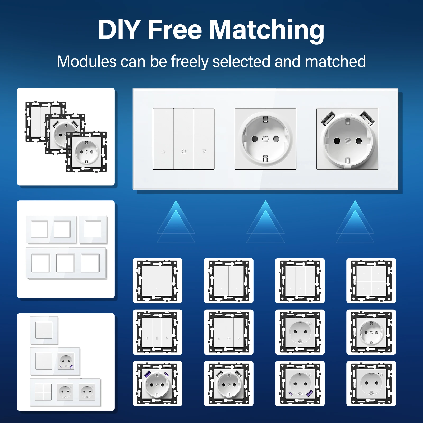 BSEED 1/2/3/4Gang Wifi Smart Switches Light/Curtain /Dimmer Click Buttons Type-c USB Sockets DIY Function Parts EU Glass Frames